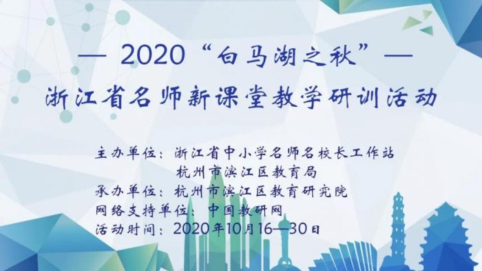 10月16日,由浙江省中小学名师名校长工作站和杭州市滨江区教育局联合举办的2020“白马湖之秋” 浙江省名师新课堂教学研训活动正式拉开序幕。